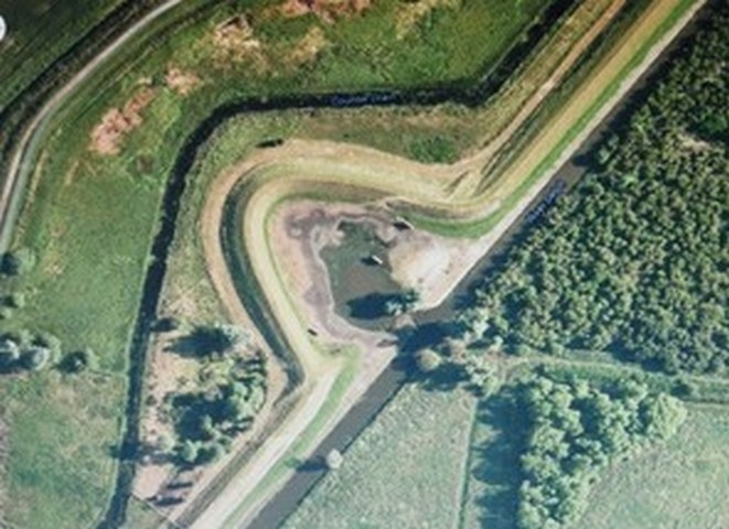 Three-quarters of a mile south of the hamlet of Sutton Gault in the Cambridgeshire Fens in Eastern England is a curious feature of the north-west bank of the Old Bedford River - a large loop or kink in it known as "The Gullet".
