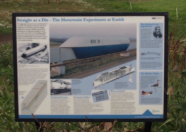 Luckily for inquisitive walkers, Cambridgeshire County Council erected an information board at the Gullet a few years ago which has some interesting, although not entirely accurate, information about the hovertrain experiments, but strangely not about The Gullet itself.