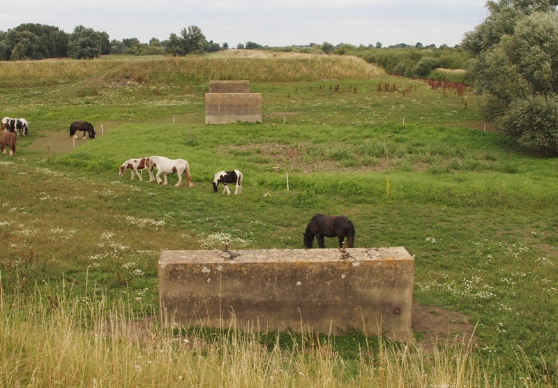 The slabs go back to 1972 and are are concrete piers, virtually all that is now visible of an elevated concrete "guideway" track planned to run between Earith and Sutton Gault on which an exciting British scientific and engineering invention, a 'tracked hovercraft', popularly called a "Hovertrain", was to be tested running at near-airliner speeds.